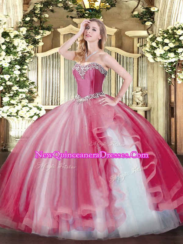 Nice Tulle Sleeveless Floor Length Sweet 16 Dresses and Beading and Ruffles