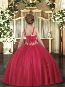 Custom Fit Floor Length Ball Gowns Sleeveless Watermelon Red Little Girl Pageant Gowns Lace Up