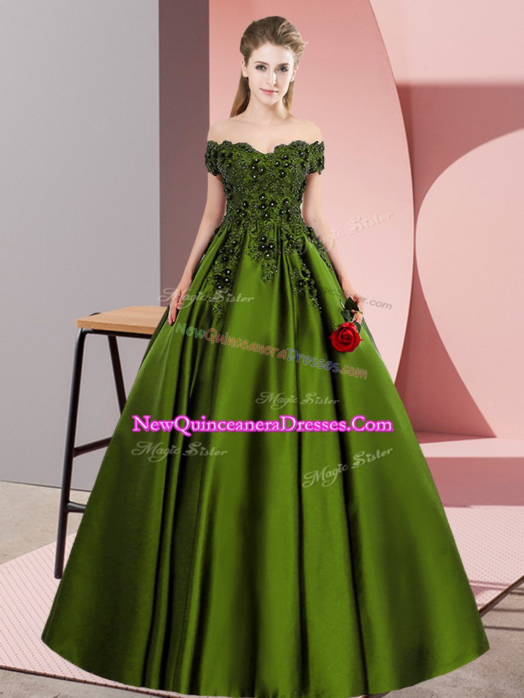 Olive Green Off The Shoulder Neckline Lace Ball Gown Prom Dress Sleeveless Zipper