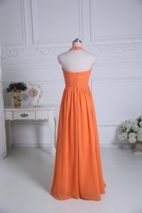 Orange Empire Chiffon Halter Top Sleeveless Ruching Floor Length Zipper Dama Dress for Quinceanera
