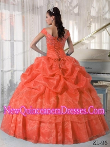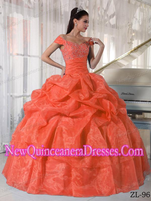 Orange Red Ball Gown Off The Shoulder Beading Elegant Quinceanera Dress