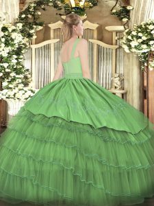 Organza and Taffeta Sleeveless Floor Length 15 Quinceanera Dress and Beading and Embroidery and Ruffled Layers