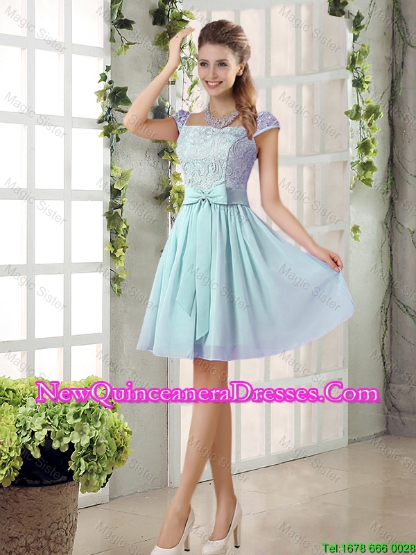 Perfect A Line Square Lace Damas Dresses with Bowknot