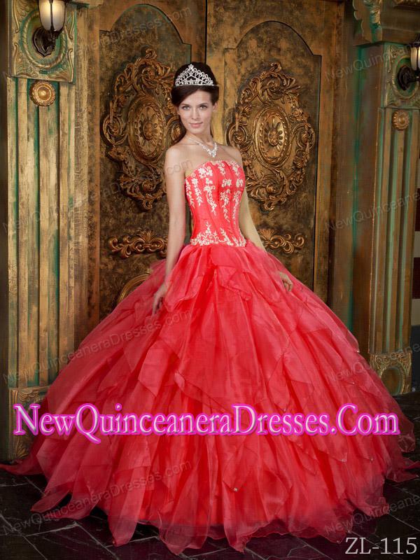 Perfect Gorgeous Ball Gown Strapless Floor-length Appliques Organza Coral Red Quinceanera Dress