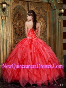 New Style Quinceanera Dress In Watermelon With Ball Gown Sweetheart Organza Beading