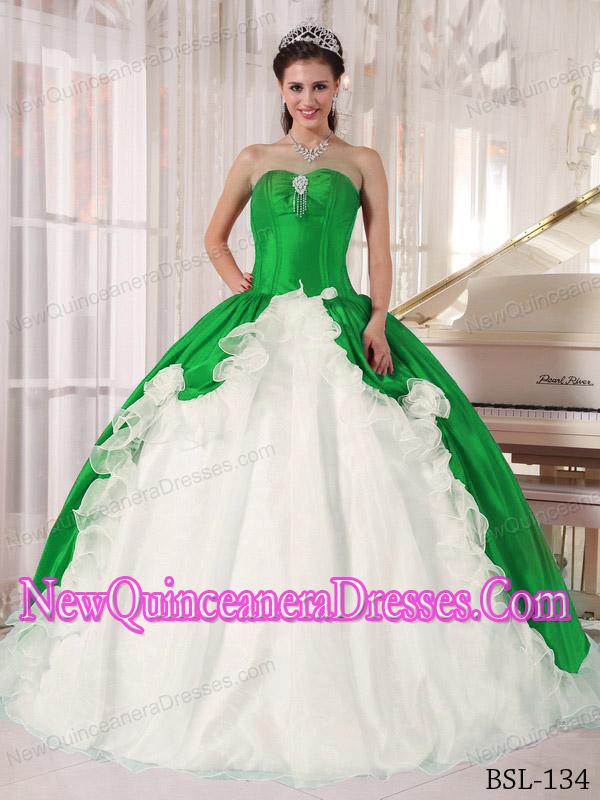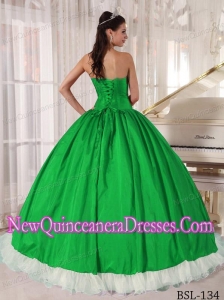 Perfect Green and White Ball Gown Sweetheart Floor-length Beading Quinceanera Dress