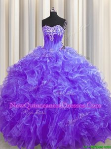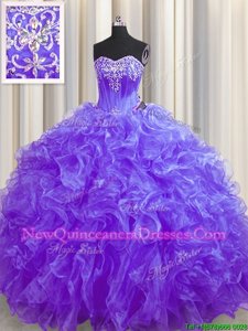 Perfect Lavender Sweetheart Lace Up Beading and Ruffles Quinceanera Dresses Brush Train Sleeveless