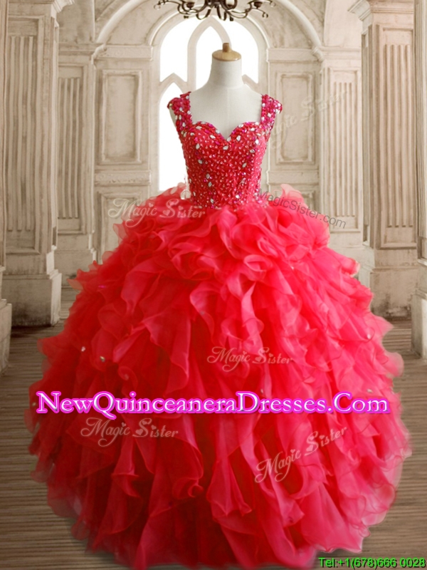 Perfect Straps Beading and Ruffles Sweet 16 Dress in Red