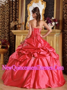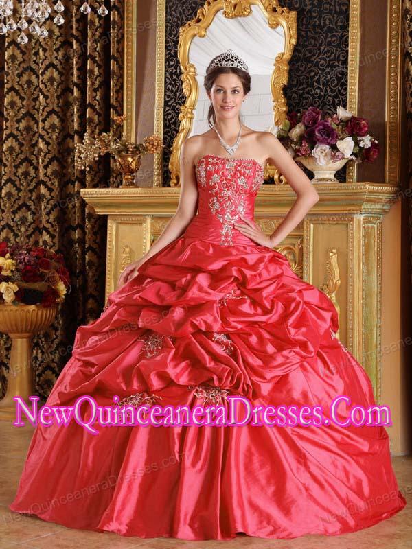 Pick-ups Red Ball Gown Strapless Floor-length Taffeta Pretty Sweet 15 Dresses