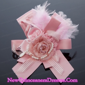Pink Rhinestone Feather Hair Ornament for Imitation Pearls