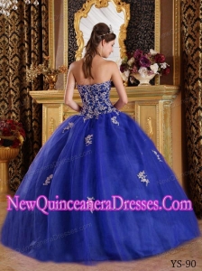 Plus Size Blue Ball Gown Sweetheart Floor-length with Appliques Tulle Quinceanera Dresses