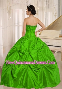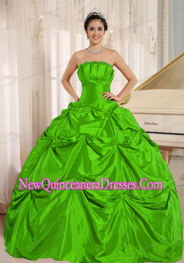 Plus Size Green Ball Gown Quinceanera Dress With Pick-ups For Custom Made Taffeta Quinceanera Dresses