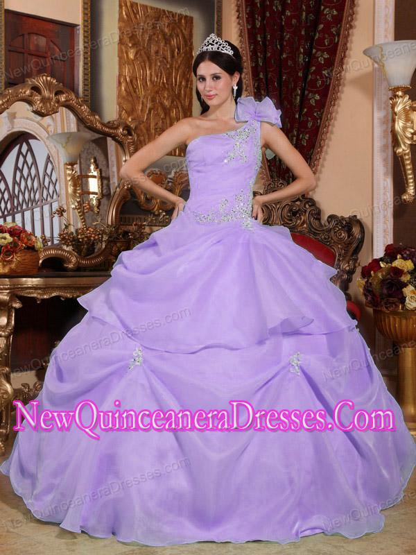 Plus Size Lilac Ball Gown One Shoulder Floor-length Organza with Appliques Quinceanera Dresses