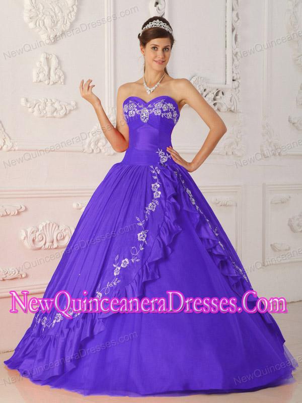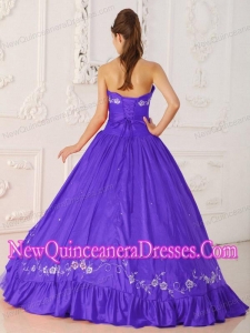 Plus Size Purple A-Line / Princess Sweetheart Floor-length Embroidery and Beading Quinceanera Dresses