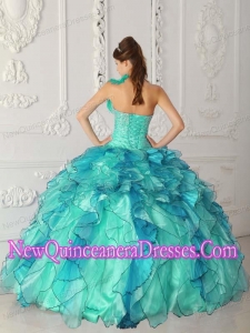 Plus Size Turquoise Ball Gown Strapless Floor-length Satin and Organza with Beading Quinceanera Dresses