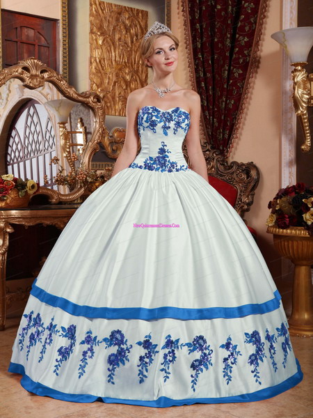 Plus Size White and Blue Sweetheart Floor-length Taffeta with Appliques Quinceanera Dresses