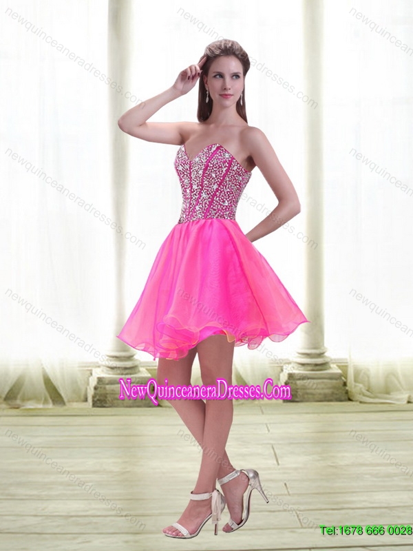Cheap 2015 A Line Mini Length Hot Pink Prom Dress with Beading