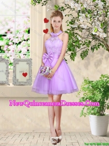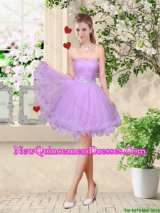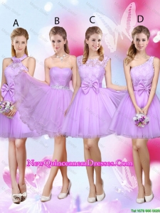Popular A Line One Shoulder Laced Damas Dresses in Lavender