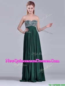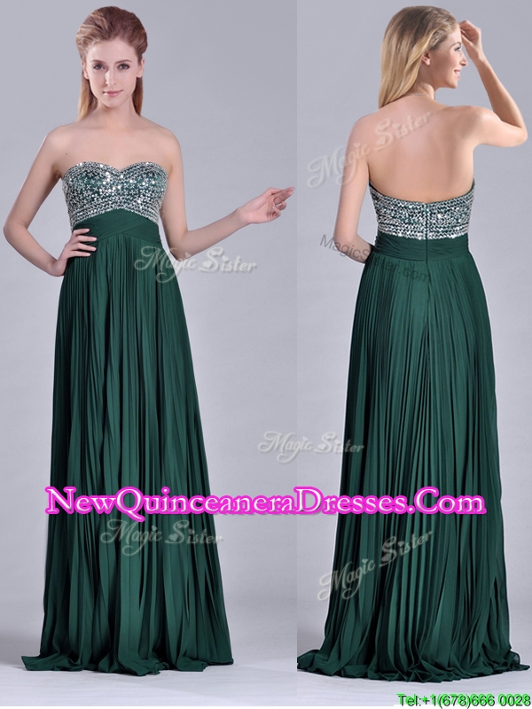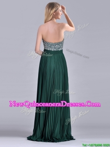 Popular Brush Train Beaded Bust and Pleated Dama Dress in Hunter Green