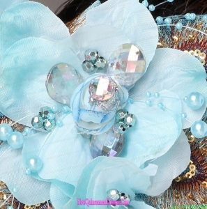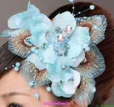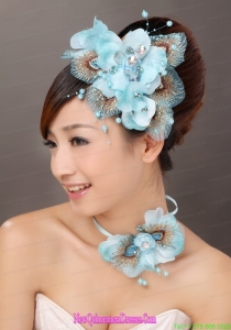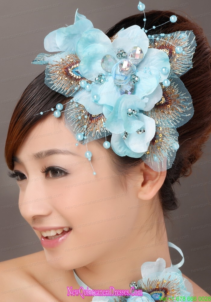 Popular Light Blue Taffeta Tulle Feather Beading Women s Fascinators
