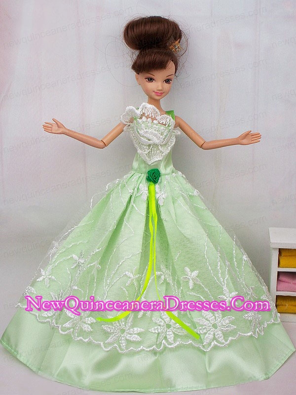 Popular Princess Apple Green Lace and hand Made Flower Party Dress For Barbie Doll