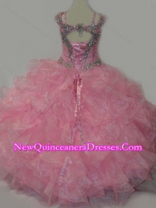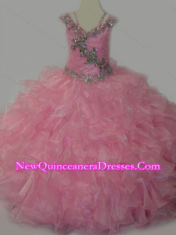 Popular V-neck Ruffled Little Girl Pageant Dress with Spaghetti Straps and Sequins