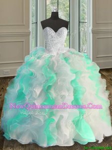 White and Blue Lace Up Sweetheart Beading and Ruffles 15th Birthday Dress Organza Sleeveless