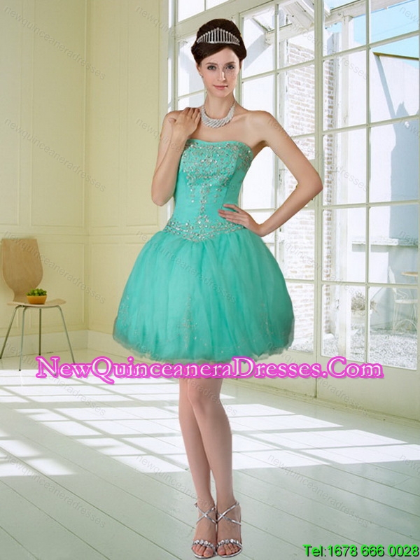 Pretty Apple Green Strapless 2015 Dama Dresses with Beading