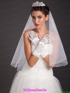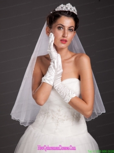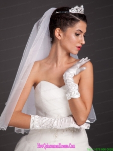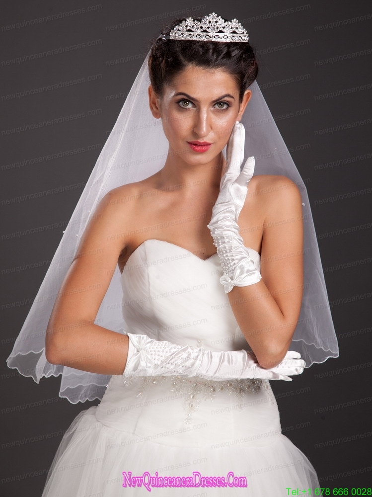 Pretty Beading Satin Fingertips Elbow Length Bridal Gloves