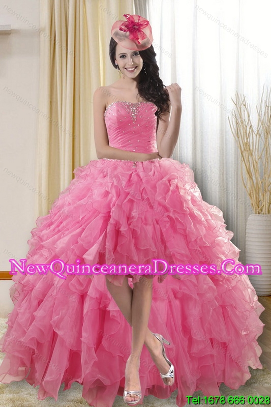 Pretty High Low Dama Dresses with Ruffles and Beading for 2015