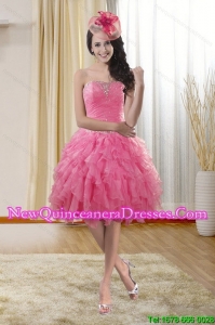 Ruffled Watermelon Red Strapless 2015 Dama Gown with Beading