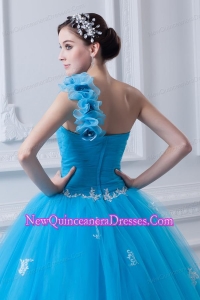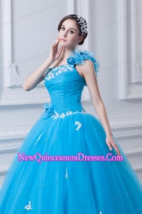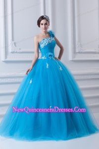 Princess One Shoulder Appliques Sky Blue 2014 Quinceanera Dress