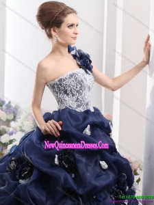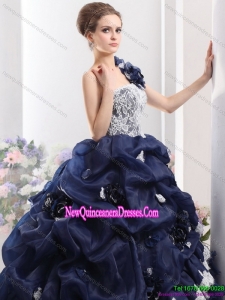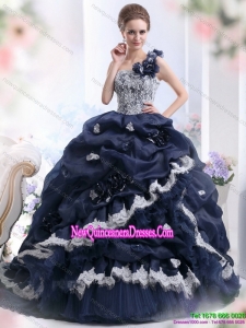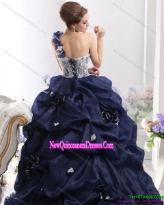Puffy 2015 One Shoulder Ruffles Quinceanera Dresses with Hand Made Flowers and Pick Ups
