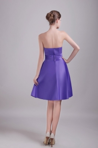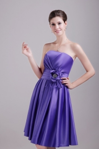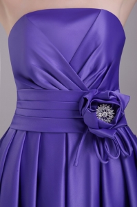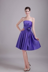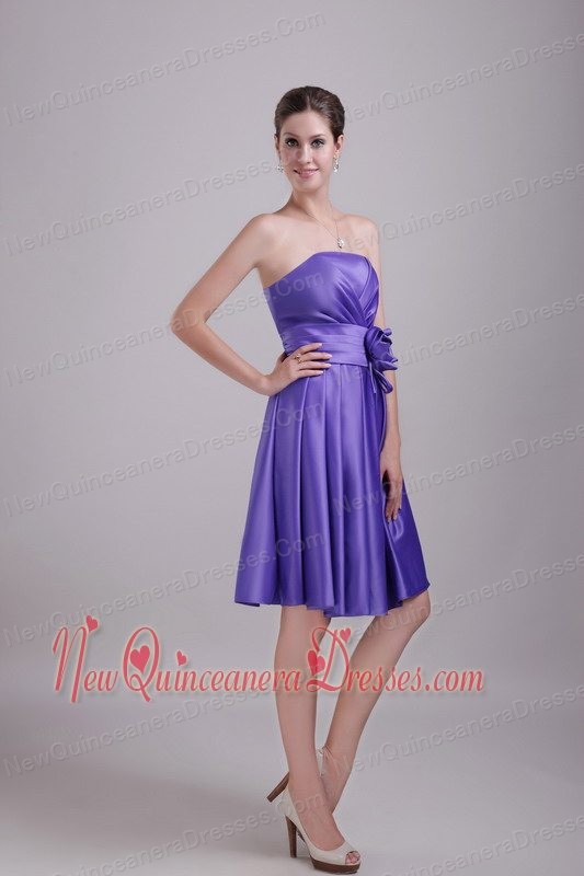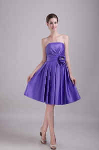 Purple A-line / Princess Strapless Knee-length Satin Handle-made Flower Dama Dresses for Quinceanera