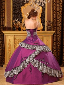 Pretty Purple Quinceanera Dress Strapless Taffeta Embroidery A-line