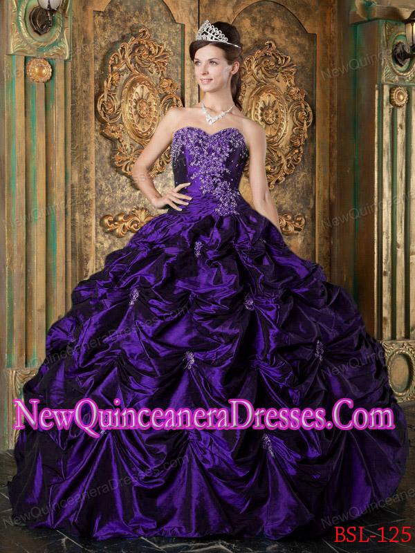 Purple Ball Gown Sweetheart Picks-up Taffeta Fashionable Quinceanera Dress