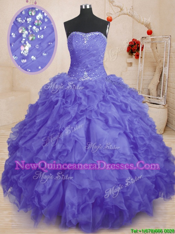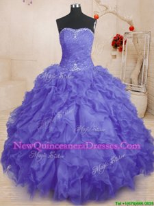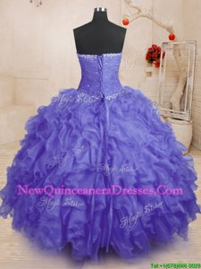 Purple Ball Gowns Beading and Ruffles and Ruching 15 Quinceanera Dress Lace Up Organza Sleeveless Floor Length