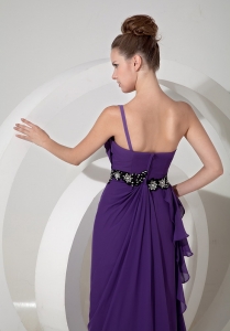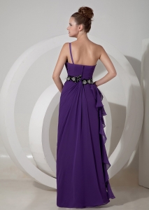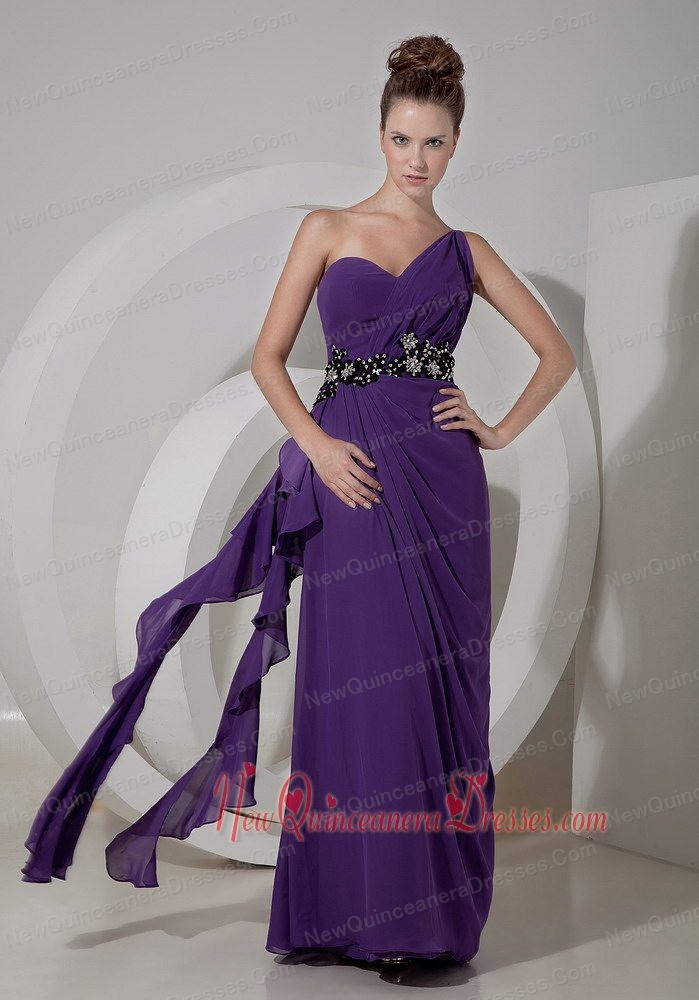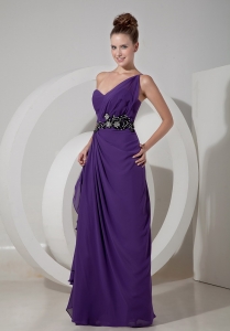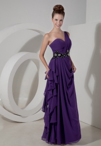 Purple Column One Shoulder Floor-length Chiffon Beading Quinceanera Dama Dresses