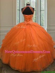 Smart Halter Top Sleeveless Beading and Sequins Lace Up Sweet 16 Dress