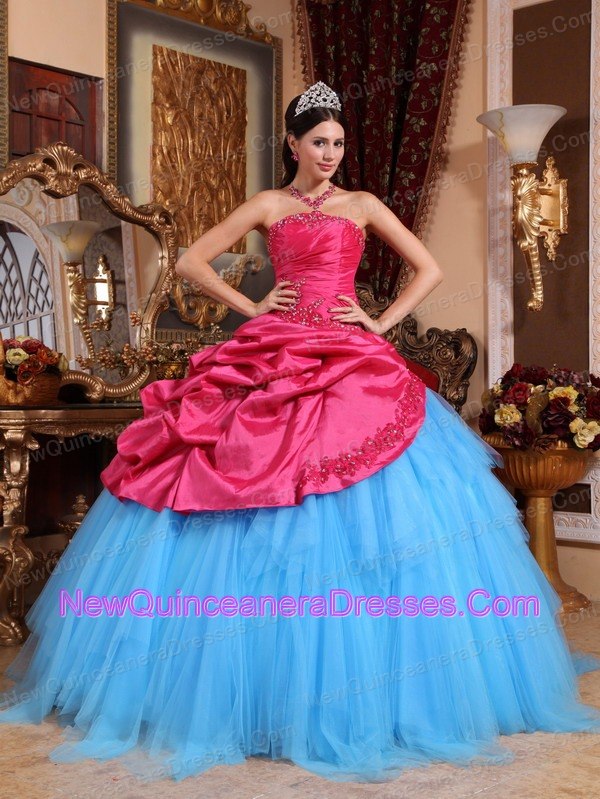 Brand New Red and Blue Quinceanera Dress Strapless Appliques with Beading Ball Gown