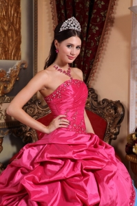 Fashionable Dark Purple Quinceanera Dress One Shoulder Taffeta Appliques and Pick-ups Ball Gown
