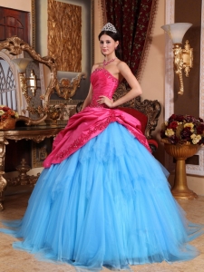 Aqua Blue Sweetheart Appliques and Beaded Decorate For 2013 Quinceanera Dress