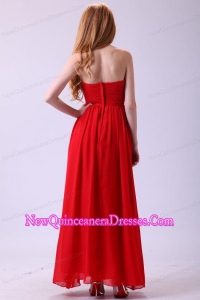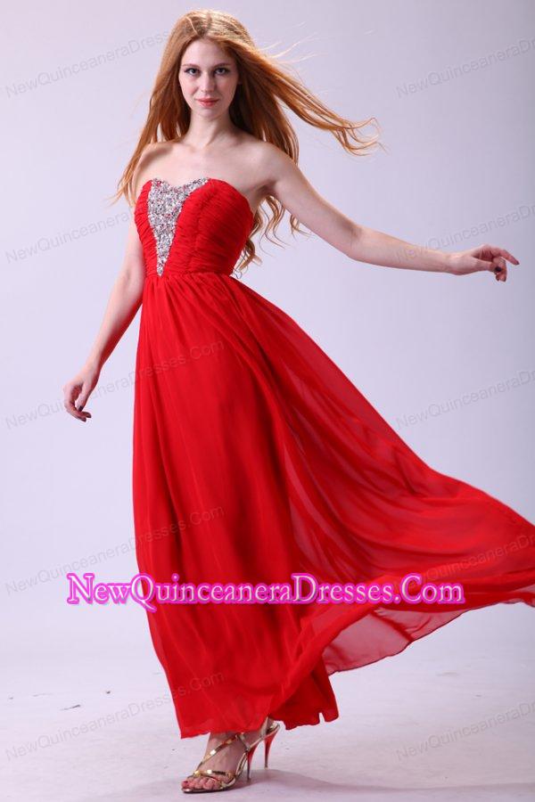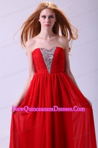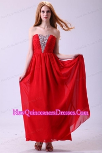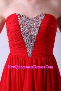 Red Empire Sweetheart Beading Floor-length Chiffon 2014 Dama Dress for Quinceanera
