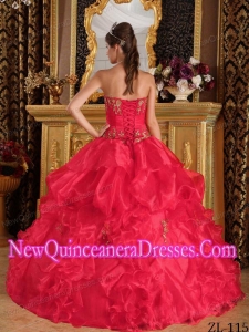 Red Fashionable Ball Gown Strapless Floor-length Organza Quinceanera Dress with Appliques