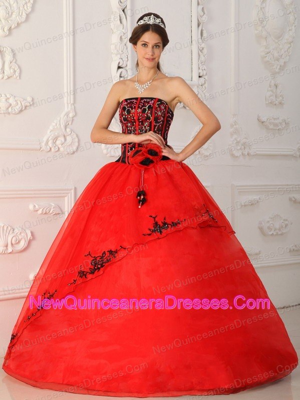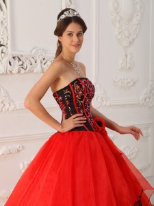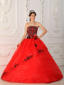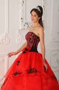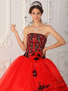 Brand New Red Quinceanera Dress Strapless Satin and Organza Ball Gown
