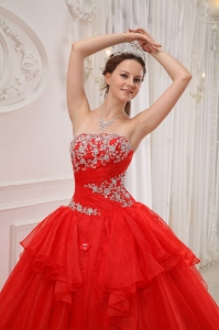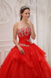 red quinceanera dress with appliques,
