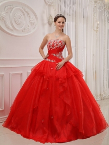 quinceanera dresses for less, Modest Red Quinceanera Dress Strapless Taffeta and Organza Appliques Ball Gown