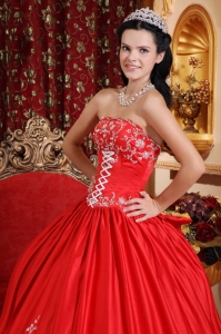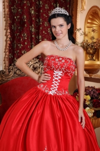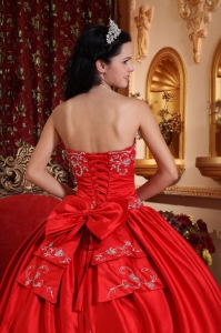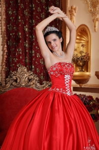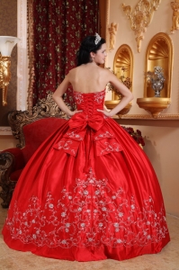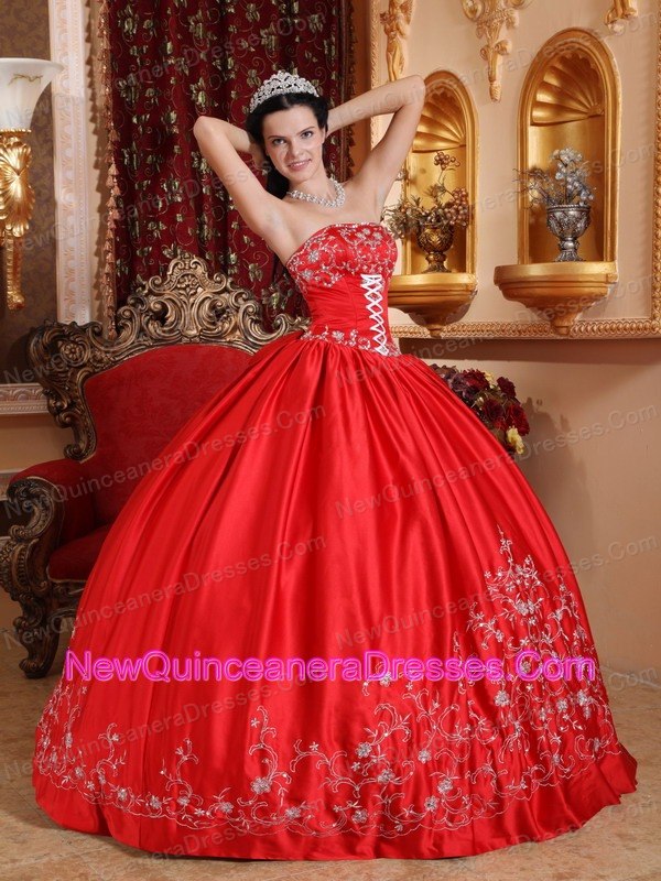 Classical Red Quinceanera Dress Strapless Taffeta Embroidery Ball Gown