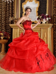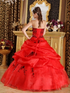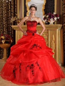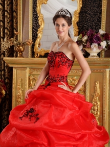 Fashionable Red Sweet 16 Dress Sweetheart Satin and Organza Embroidery Ball Gown