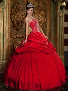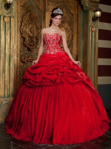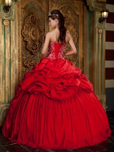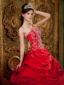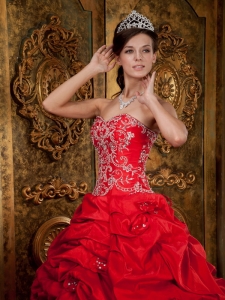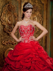 Wonderful Red Quinceanera Dress Sweetheart Taffeta Beading and Appliques Ball Gown